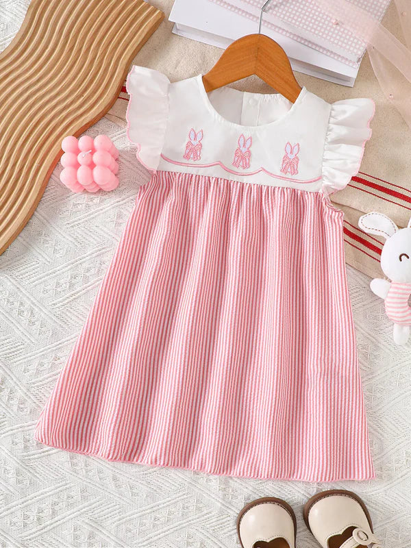 Children's Ruffled Bow Contrast Floral Dress with Headband