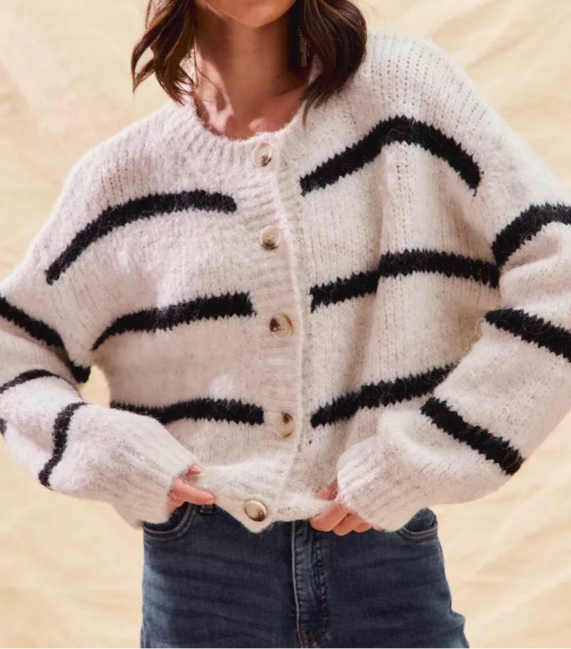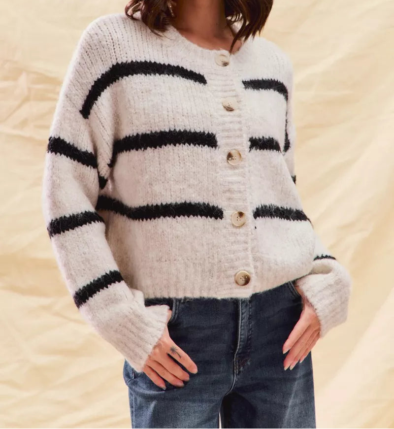 Stripe Soft Touch Button Cozy Sweater Cardigan