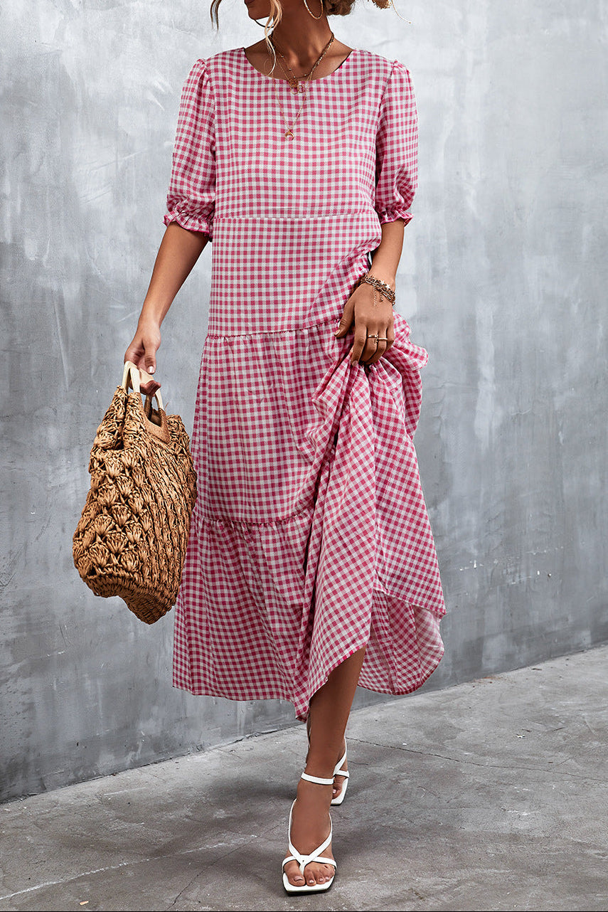 Named after St. Keyne, a 5th-century Welsh saint known for her devotion and miraculous works, this dress embodies timeless elegance with thoughtful design. The beautiful plaid pattern, charming flounce sleeves, and graceful tiered silhouette create a look that's both modest and utterly feminine—perfect for the woman who honors her faith through refined fashion.