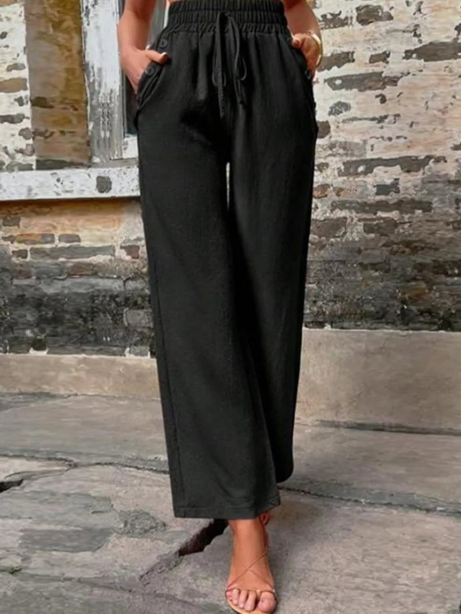 Tied High Waist Wide Leg Pants with Pockets