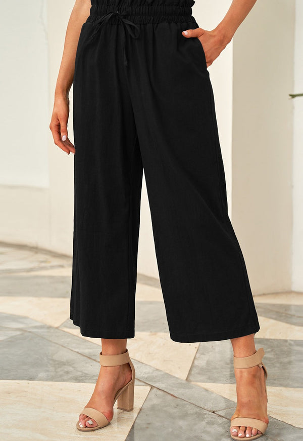 Drawstring Paperbag Waist Wide Leg Pants