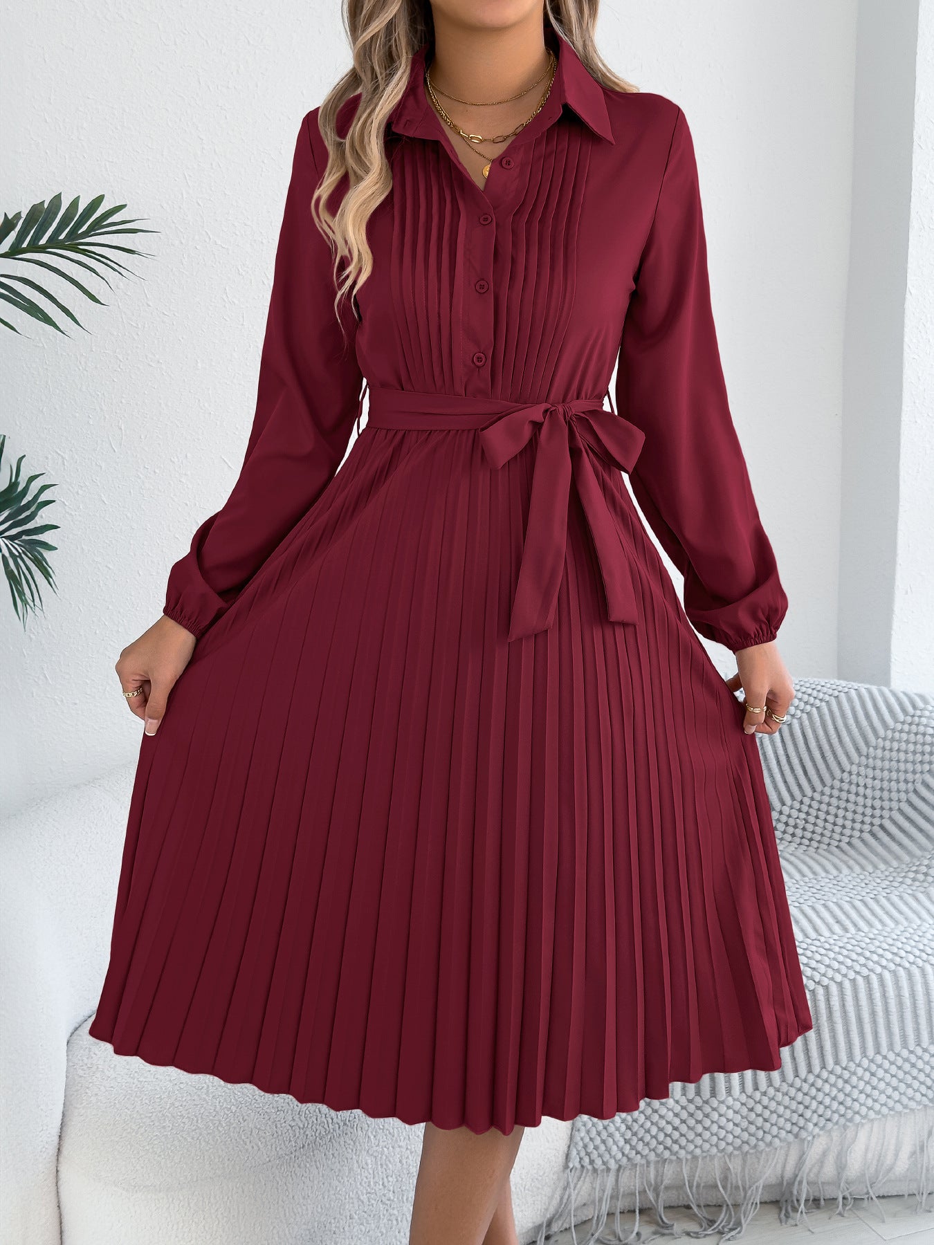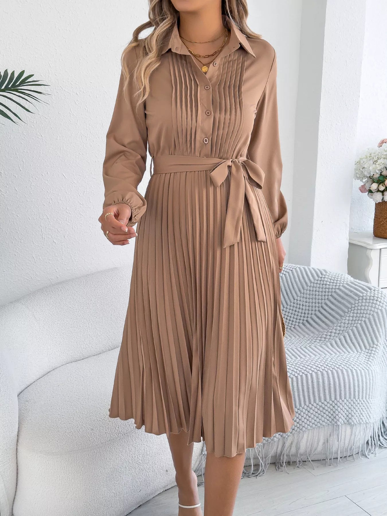 - Features:Buttoned,Pleated,Belted