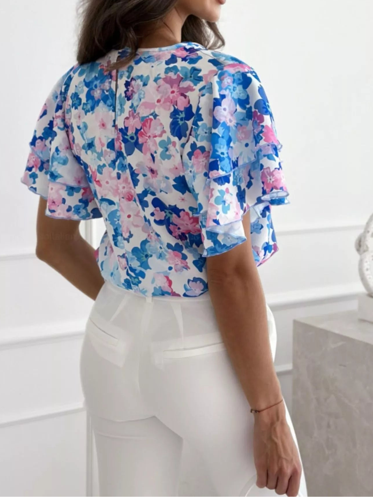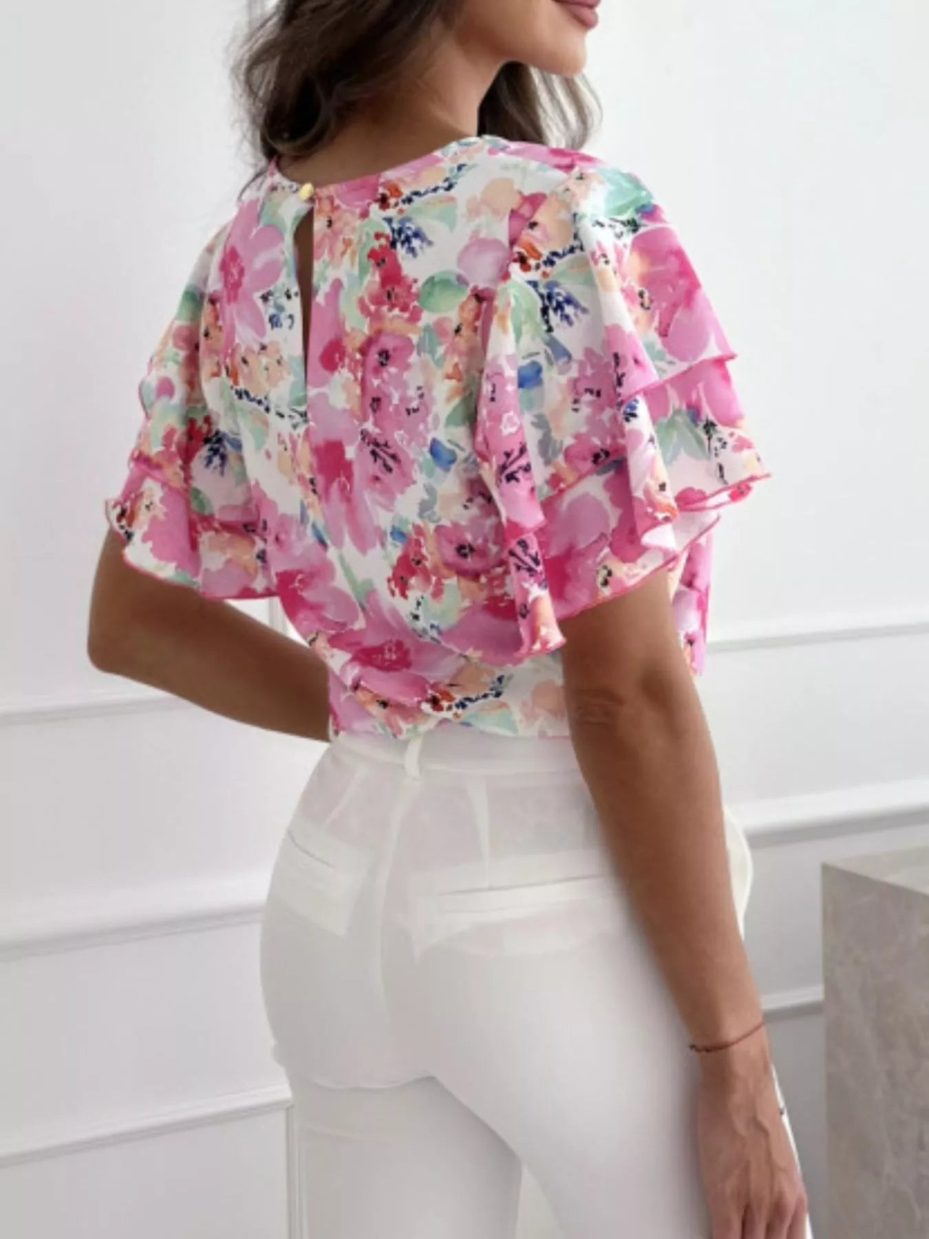 Floral Print Ruffle Sleeve Blouse